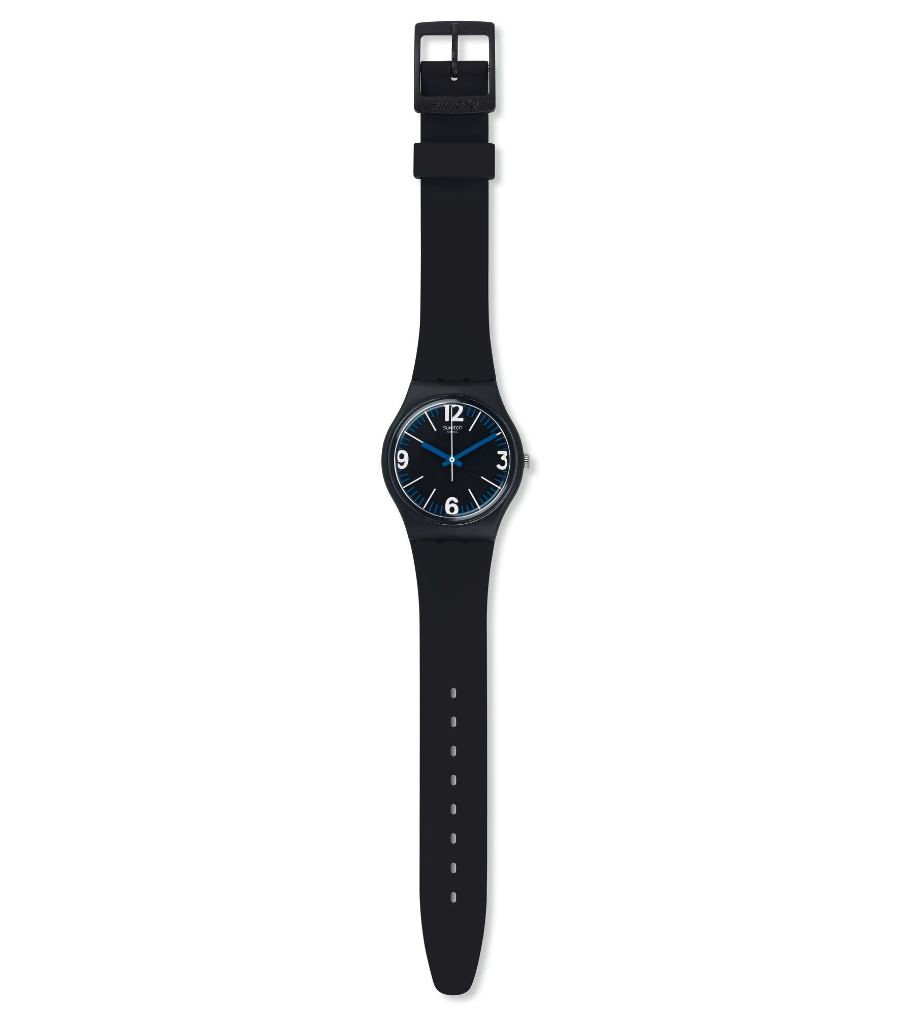 Lo máximo en sofisticación deportiva. El reloj FOUR NUMBERS (GB292) se presenta en un diseño integral en negro con una llamativa esfera en negro con detalles de color: números e índices en blanco, y agujas de horas y minutos en azul luminoso. La caja y la hebilla son de color negro mate, mientras que la correa y la trabilla igualmente en negro reflejan un estilo sofisticado.