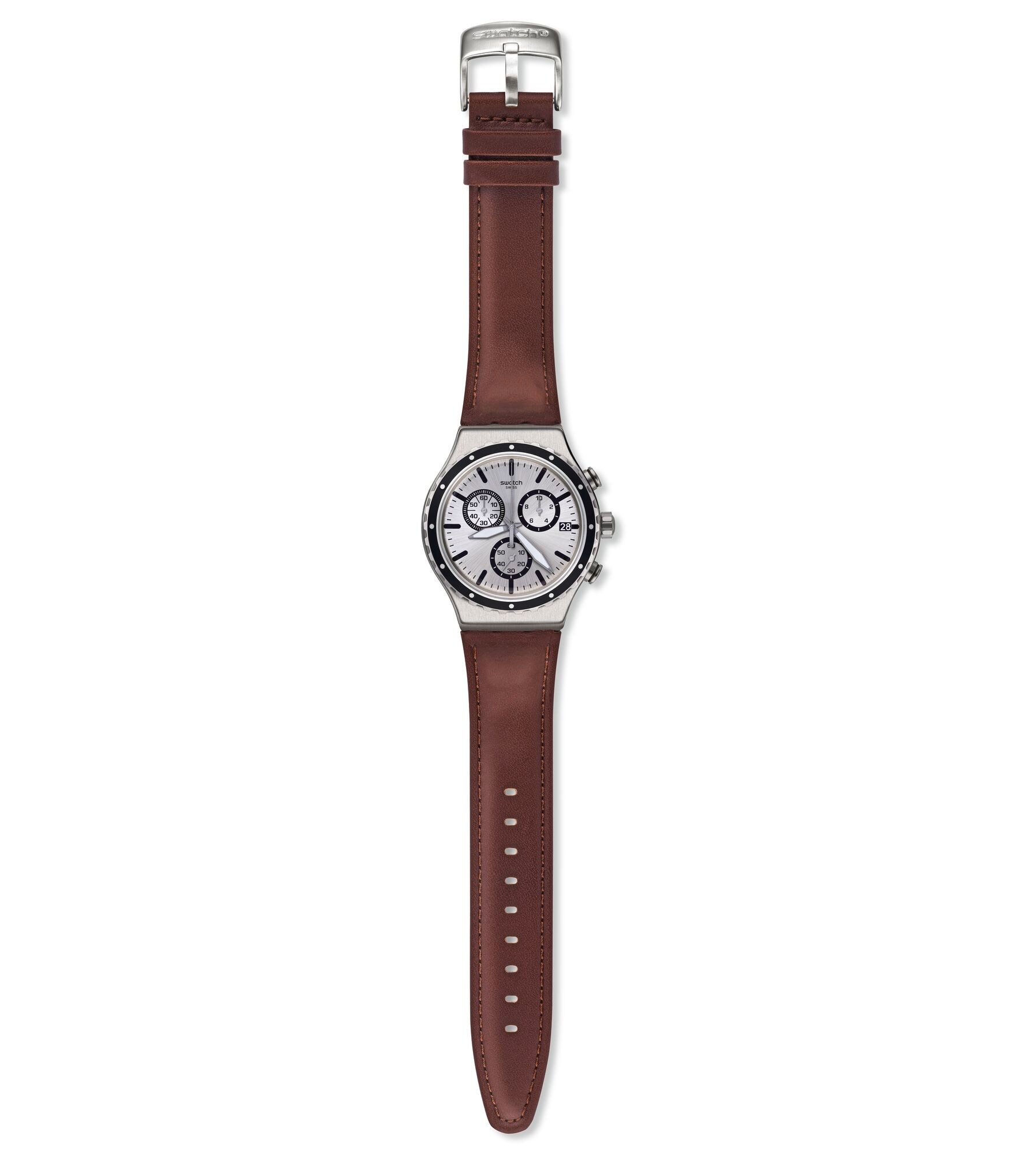 Voyez la vie en grand ! GRANDINO (YVS437) propose un cadran couleur argent brossé soleil à l’index imprimé en noir, une fenêtre de date à 3 heures et des aiguilles superluminova. Il est serti dans une lunette en acier inoxydable brossé aux gravures noires et son boîtier est assorti. Le bracelet en cuir marron luxueux au passant assorti maintient la montre grâce également à une demi-boucle en acier inoxydable brossé.