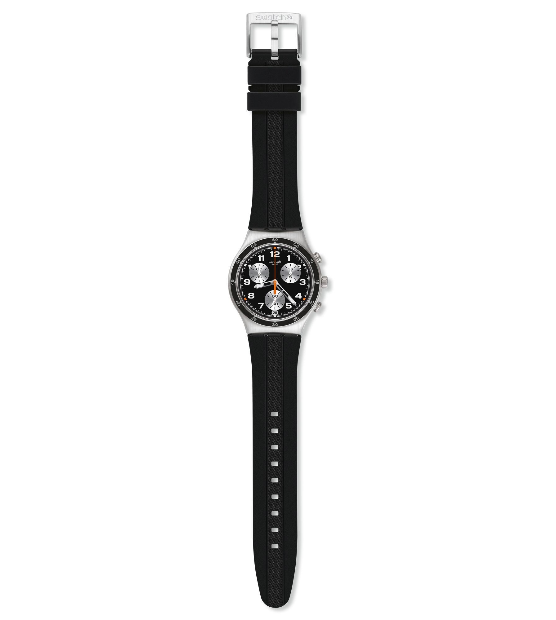 APRES VOUS (YCS598) n’oublie jamais les bonnes manières malgré son audacieux design incluant une fenêtre de date, trois sous-cadrans et des aiguilles superluminova. Le bracelet en silicone noir au sublime relief hachuré ponctue ce modèle.