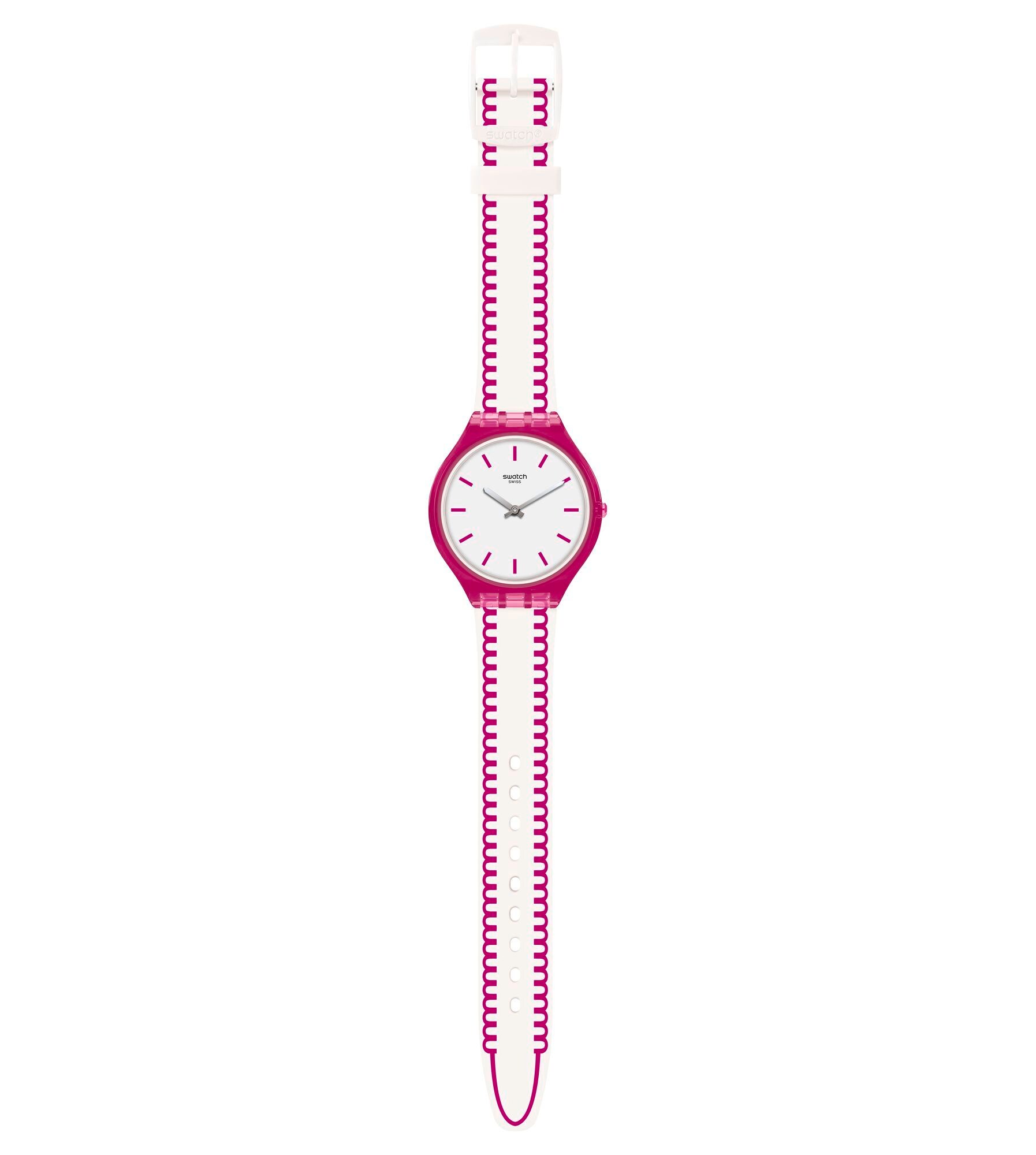SKINPUNCH (SVOP102) 沒有不必要的裝飾,簡單的造型,極薄的白色矽膠錶帶在邊緣綴以粉紅色的彎曲圖案,一支手錶就足以為您的整體造型加分。