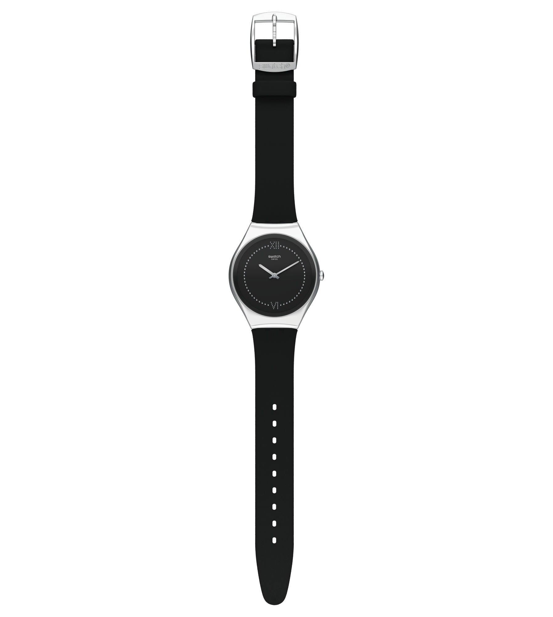 細膩而低調的 SKINALLIAGE,將成為你出席各種知性場合的最佳吸睛配件。拋光不鏽鋼錶殼在黑色仿磨砂皮革錶帶的襯托下,更加閃耀。除此之外,太陽紋磨砂錶盤上的Swatch 寶石更是吸引眾人目光。戴上它,你就是夜晚party的亮點!